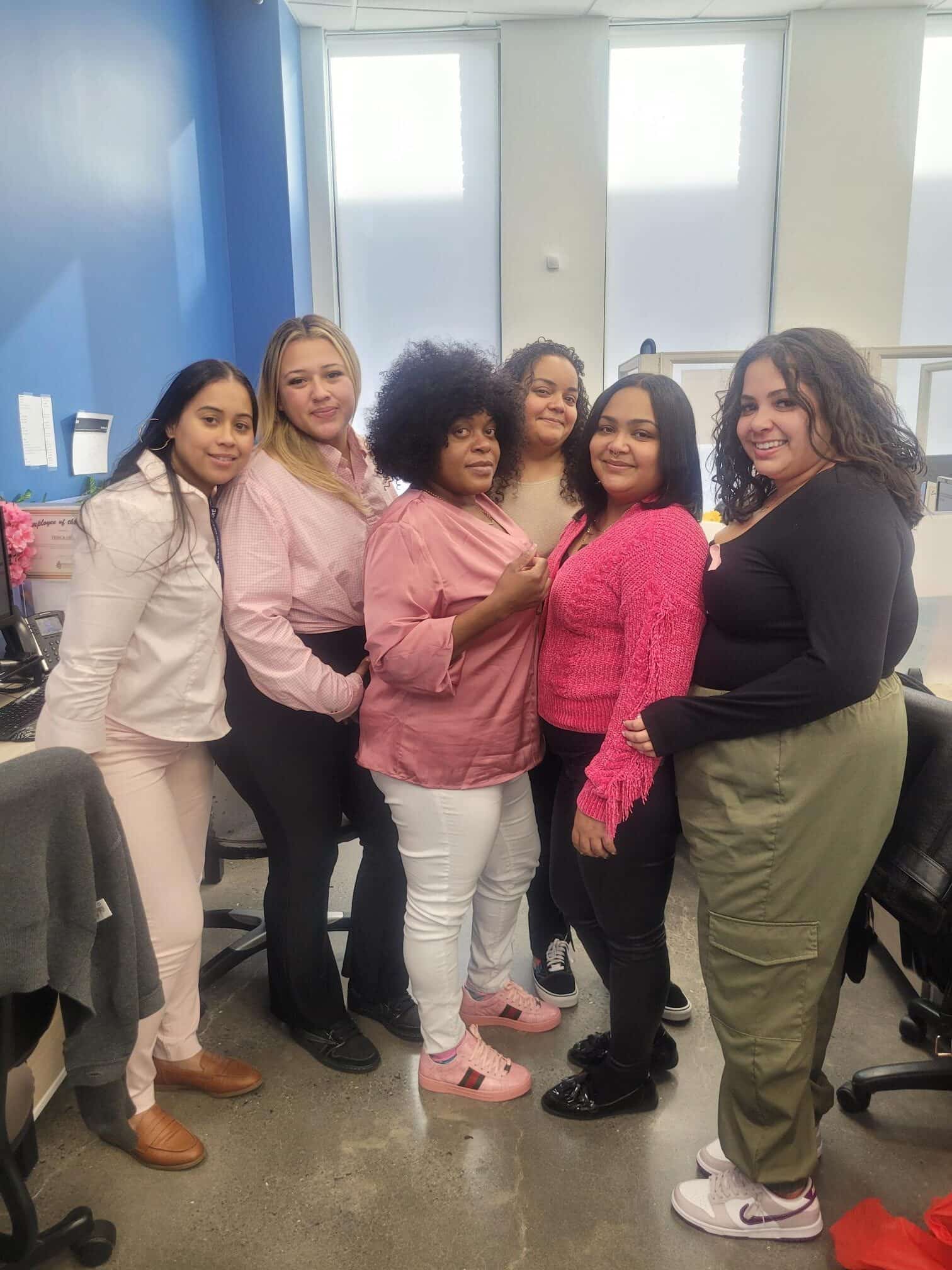White Glove Employees Celebrating in Pink
